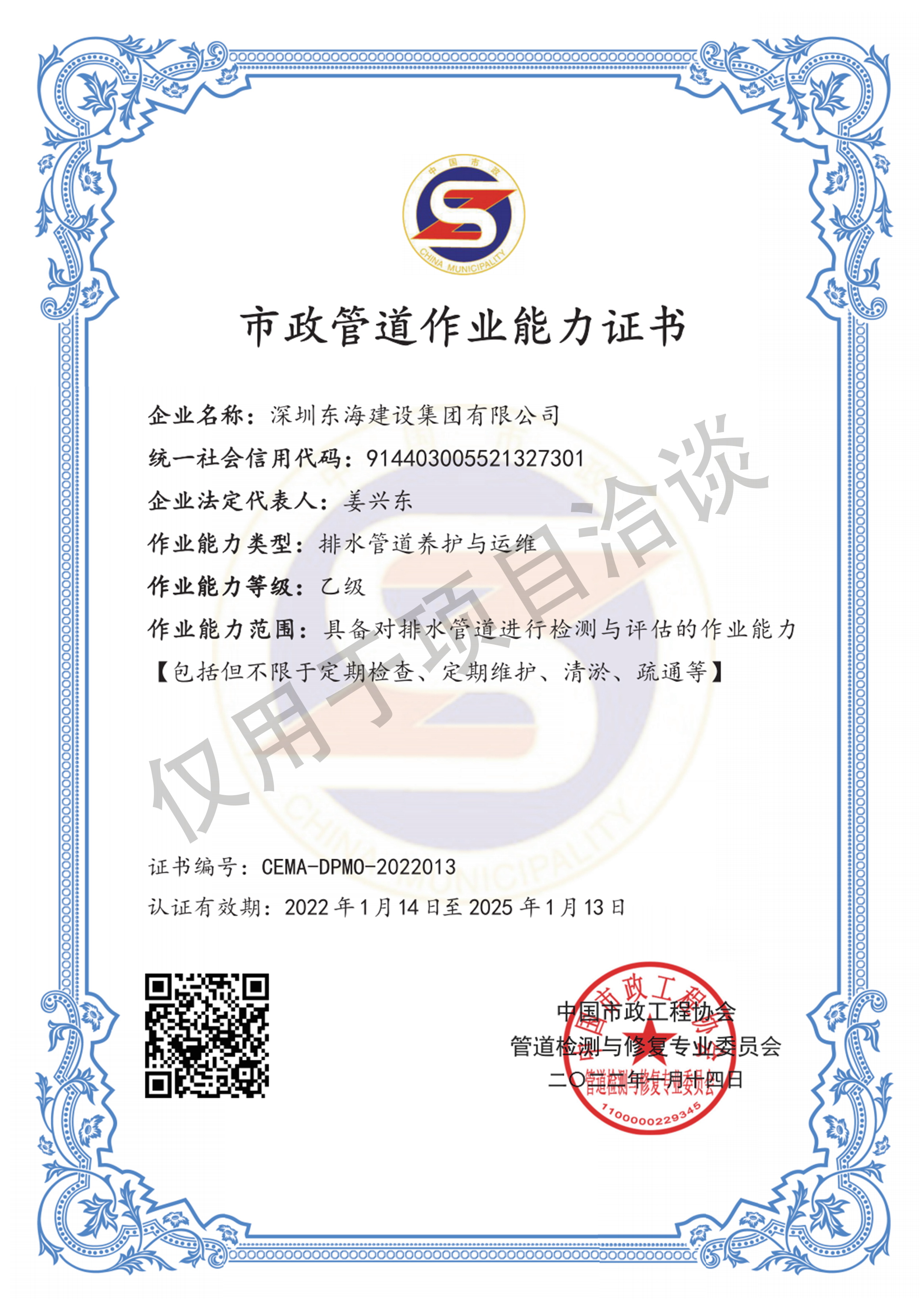 市政管道作業能力證書